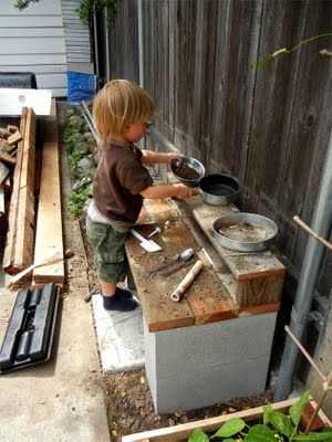 Если у Вас есть возможность организовать для малыша уличную кухню, отдайте ему для игры настоящие старые кастрюльки, ведерки, ложки - с ними так интересно "готовить" как мама.
