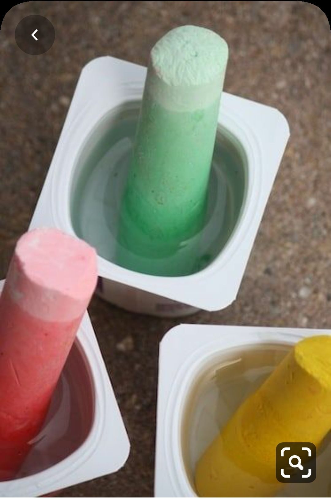 Лайфхак: чтобы мелки ярче рисовали и меньше пачкали одежду малыша, нужно их немного намочить.