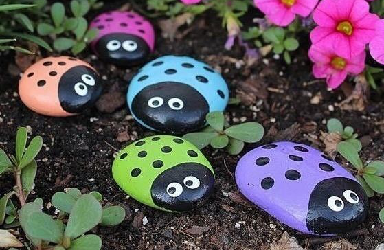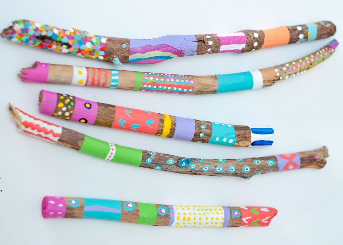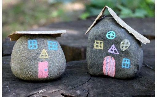 Раскрашиваем палки и камни. Если дать малышу толстую кисточку, яркую гуашь и камень, он будет очень сосредоточен, будет разглядывать камень со всех сторон и стараться достать, чтобы покрасить, везде. Раскрашивание объемных предметов для малышей одновременно и проще (контуры предмета нагляднее, понятнее, что красить), и сложнее организовано технически (ребенок работает с объемом). Если мама немного поможет и добавит детали, из цветных камней могут получиться милые украшения для сада, а из палок - стильная подвесная "музыка ветра" или "сухой букет".
