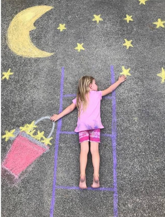 Рисунки мелками. Лето - традиционное время рисования мелками. Полезно рисовать двумя руками одновременно, рисовать на асфальте и на вертикальных поверхностях.