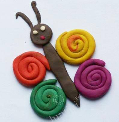 Летняя лепка из пластилина. Отдельный достаточно сложный для малышей навык работы с пластичными материалами - это скатывание "колбасок" или "жгутиков". Покажите ребенку, как катать кусочек мягкого пластилина по столу или между ладонями, вытягивая его в длинный "жгутик". Из пластилиновых "жгутиков" можно скатывать разные фигурки и лепить самые разные плоскостные изображения того, что нас радует летом: бабочек, цветов, ягод, солнца.